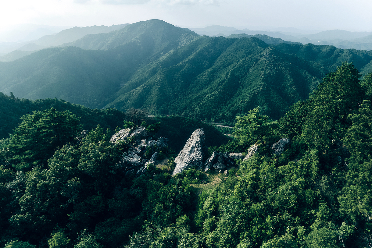 岩上に立つと丹波篠山の風景を眺めることができます。